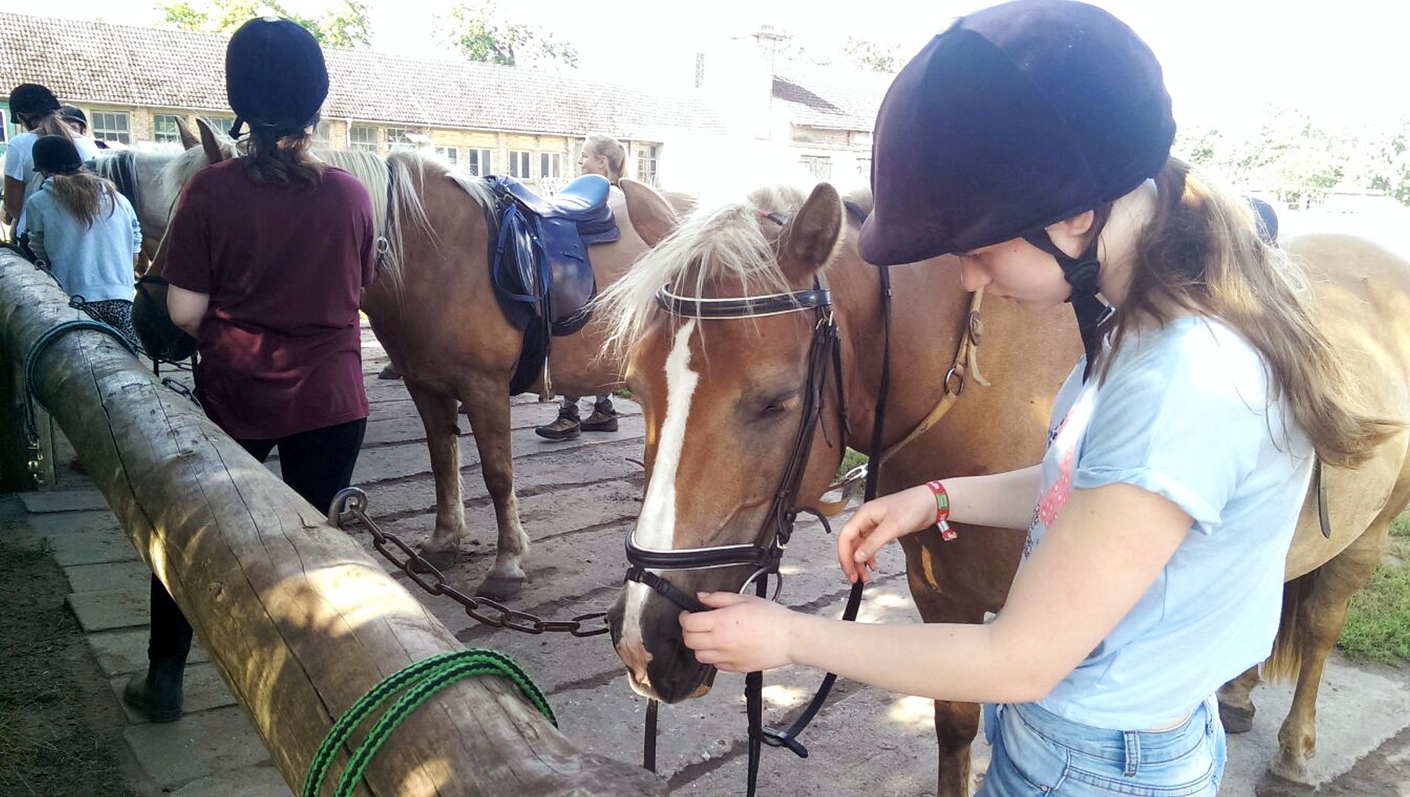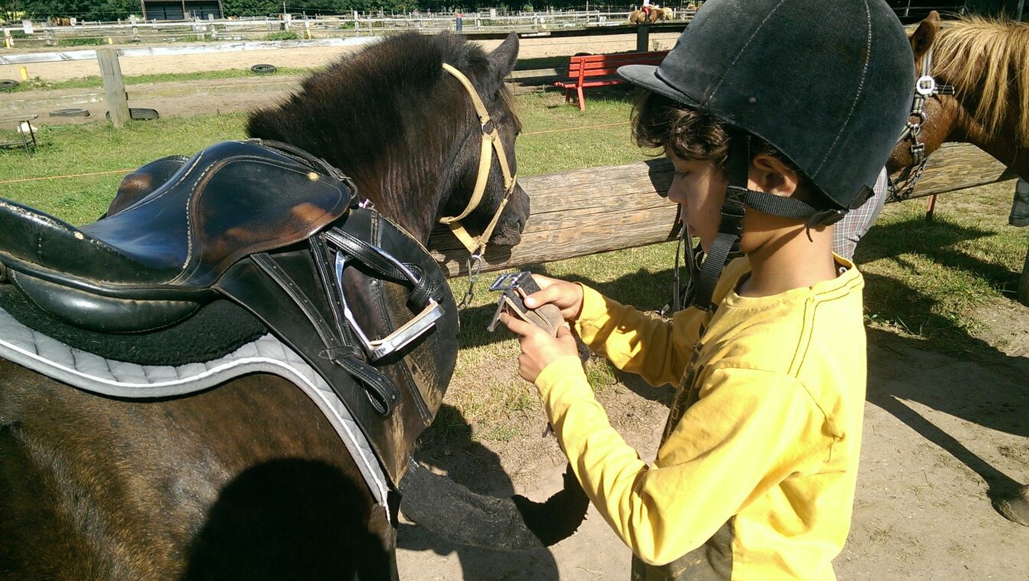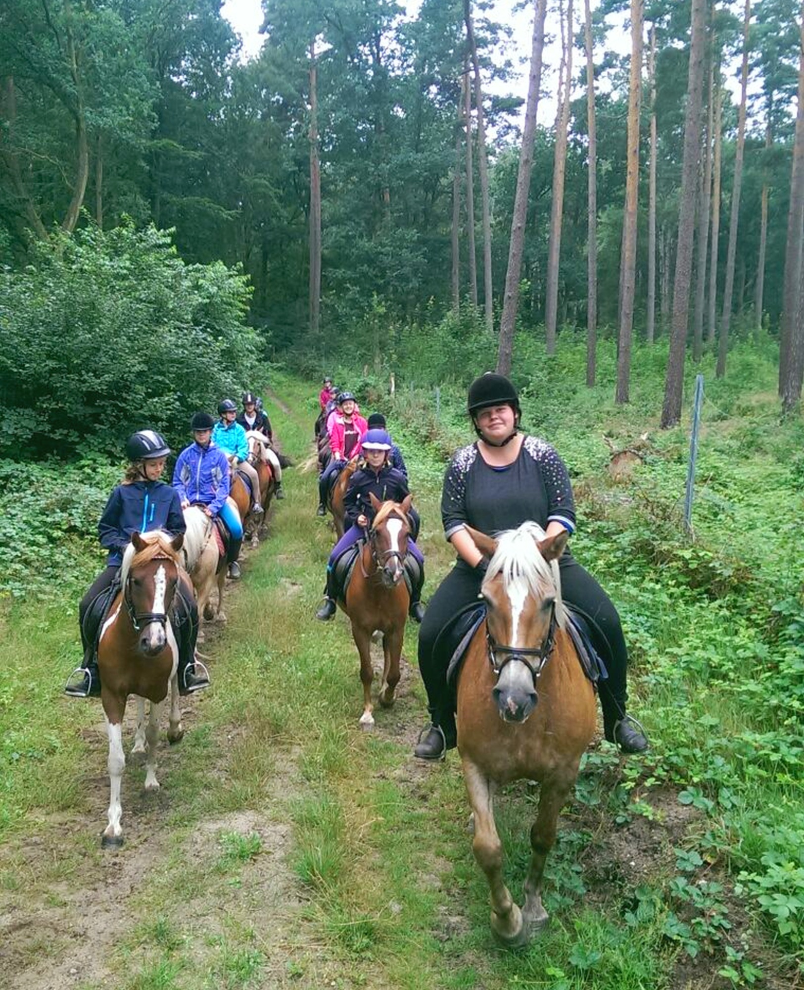 - Reit- oder Jogginghose, Reit- oder Gummistiefel, Reitkappe (kann ausgeliehen werden) und Reithandschuhe.